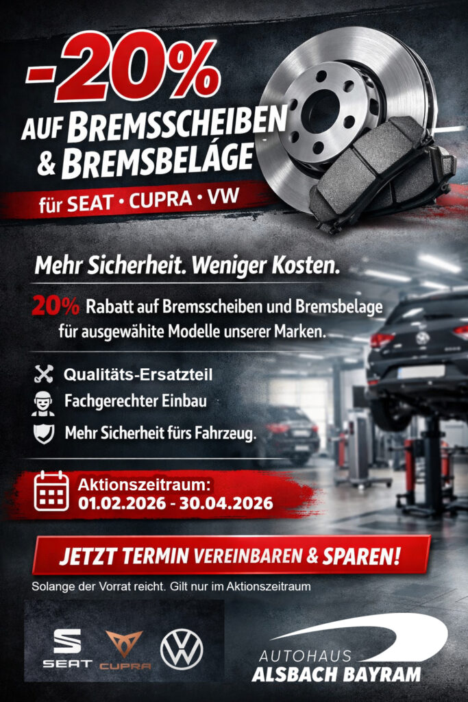 Jetzt 20 % Rabatt oder mehr auf Bremsen & Bremsbeläge für CUPRA-Modelle.